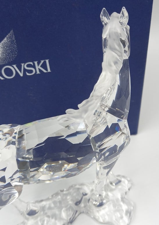 Artikelnummer: 251000Imposant beeld van een merrie, uitgevoerd in helder kristal. De staart en manen zijn gematteerd. Inclusief doos, omdoos en certificaat.