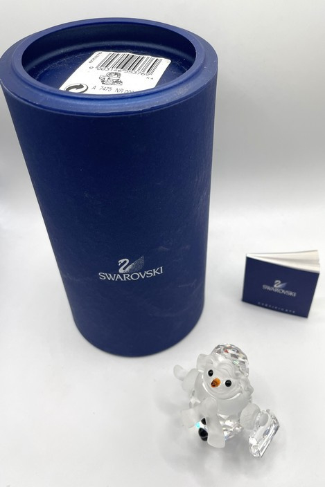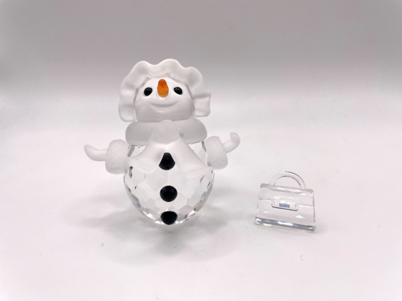 Artikelnummer: 251007Deze vrolijke Swarovski sneeuwvrouw met losse handtas brengt direct de charme van de winter tot leven. Met haar sprankelende kristal en oranje neus straalt ze warmte en gezelligheid uit. De sneeuwpop is een sfeervol stuk dat zowel als decoratie als verzamelobject een glimlach oproept – perfect om de magie van het seizoen in huis te halen.