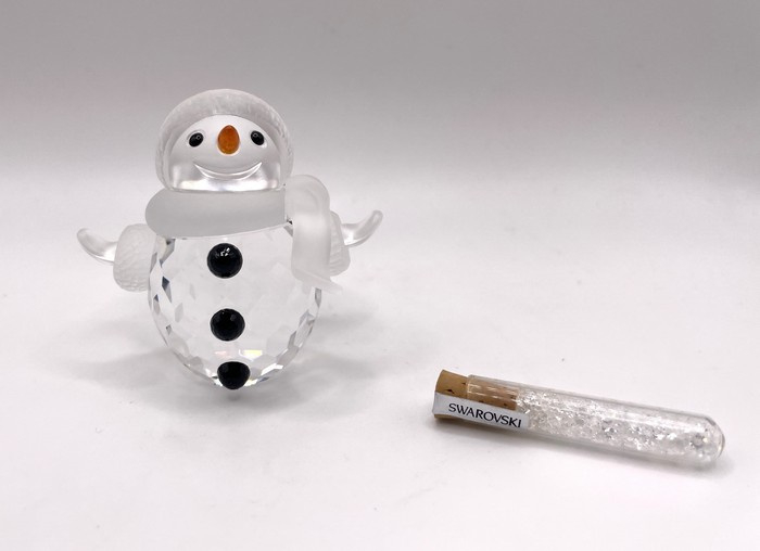 Artikelnummer: 251009Deze vrolijke Swarovski sneeuwman brengt direct de charme van de winter tot leven. Met zijn sprankelende kristal en fijne details straalt hij warmte en gezelligheid uit. Bij deze grote sneeuwpop hoort een buisje met diamantjes, die je om het beeldje heen kunt strooien, zodat het lijkt op sneeuw.