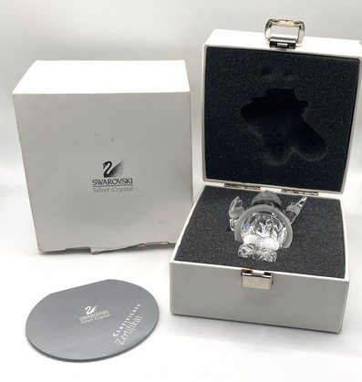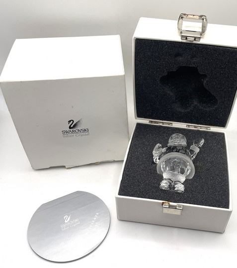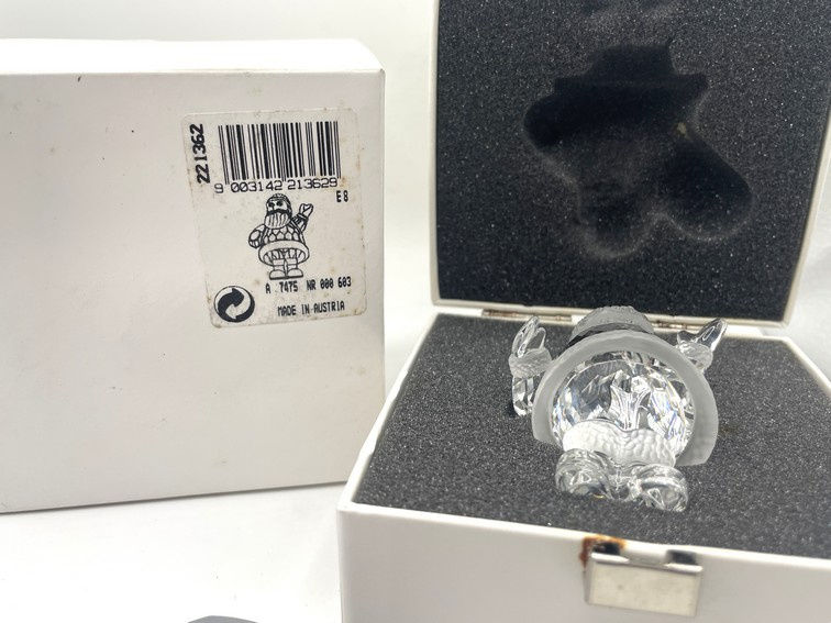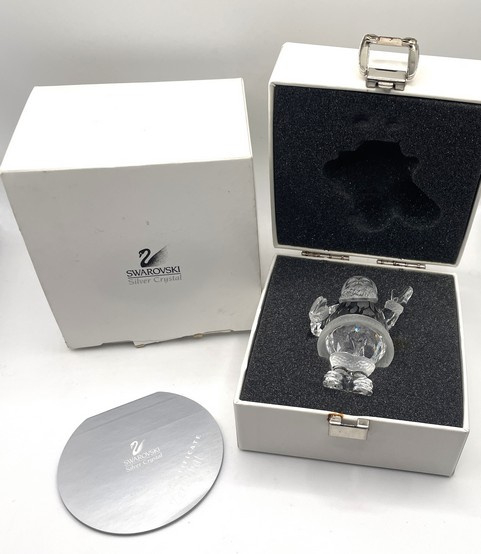 Artikelnummer: 251018Deze vrolijke Swarovski kerstman brengt direct de winter tot leven. Hij zwaait je tegemoet met zijn in helder kristal uitgevoerde handje. Het beeldje heeft prachtige gematteerde details en wordt geleverd inclusief origineel doosje, omdoosje en certificaat.