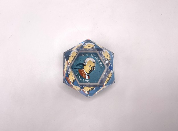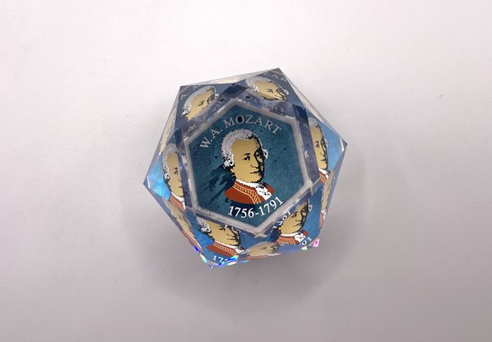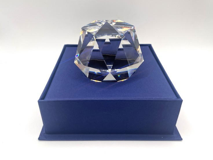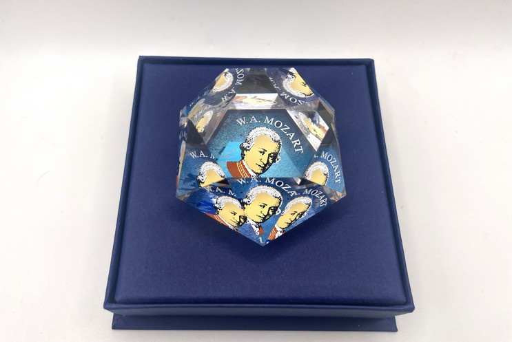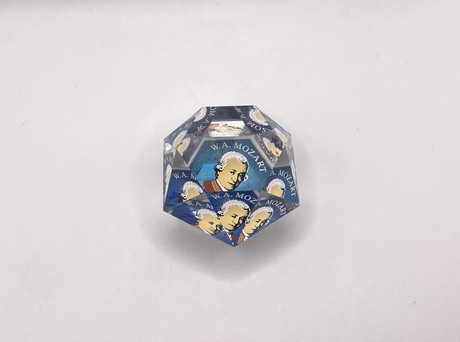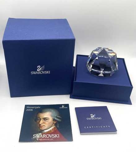 Artikelnummer: 251024In 2006 vierde Swarovski de 250e geboortedag van Wolfgang Amadeus Mozart. Deze gelegenheid is voor Swarovski reden genoeg om deze grote meester van de klassieke muziek te eren door deze paperweight / presse-papier aan hem op te dragen. Het gaat hier om de zeshoekige variant (niet de ronde halve bol).