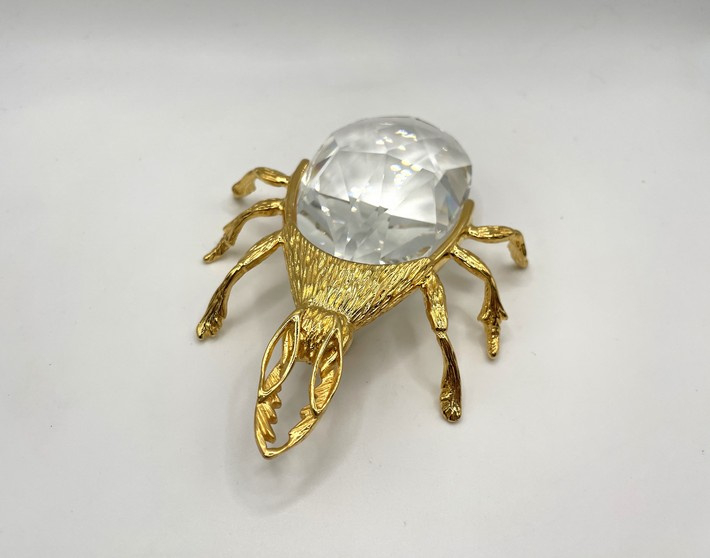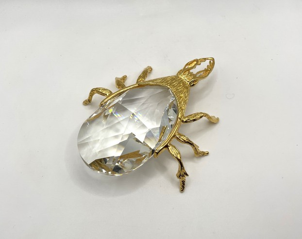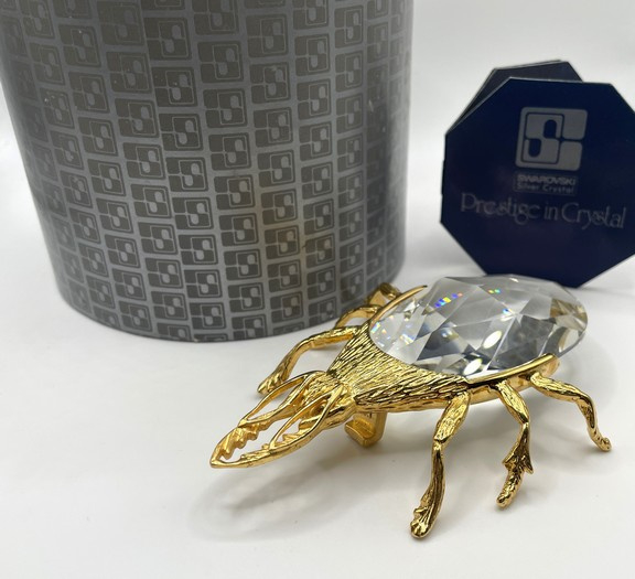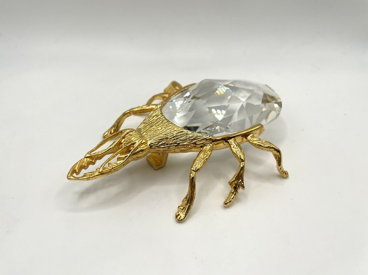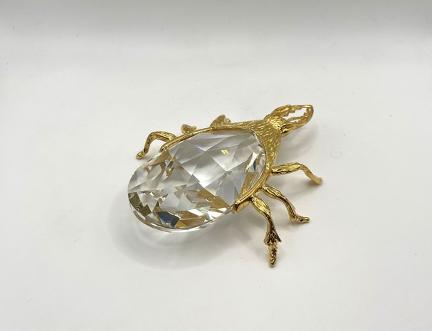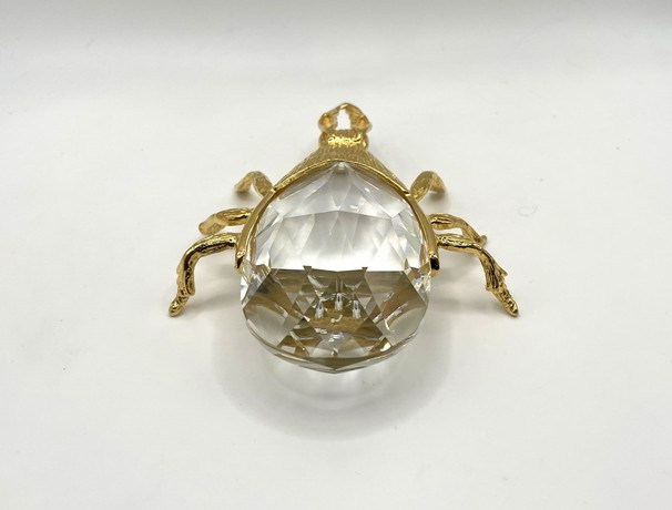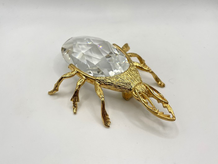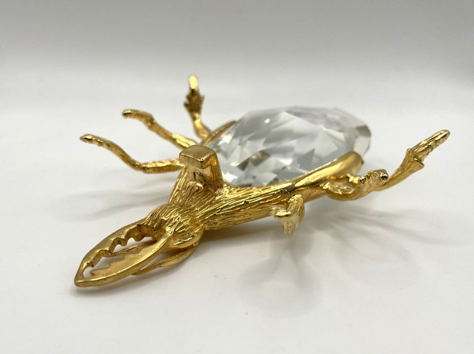 Artikelnummer: 251036Zeldzame flessenopener in de vorm van een kever. Het lichaam van de kever bestaat uit een groot Swarovski kristal, dat is ingezet in een goudkleurig metalen frame, wat de rest van het lichaam van de kever vormt. De flessenopener is uitgebracht tussen 1976 en 1988.