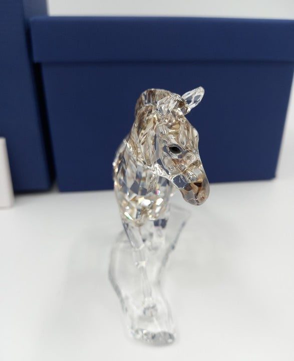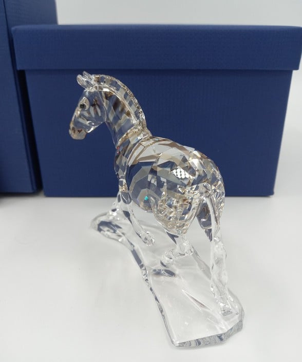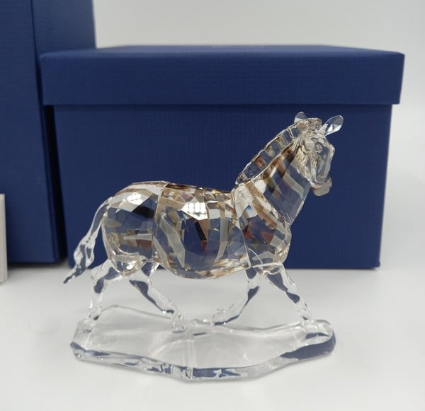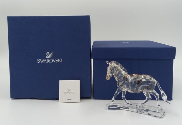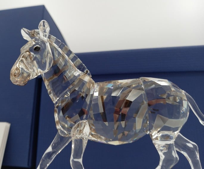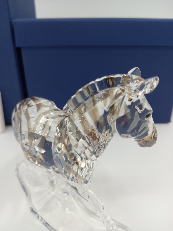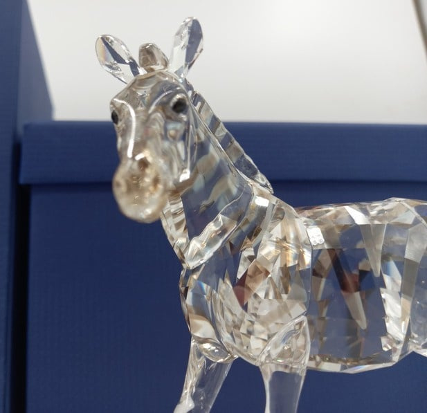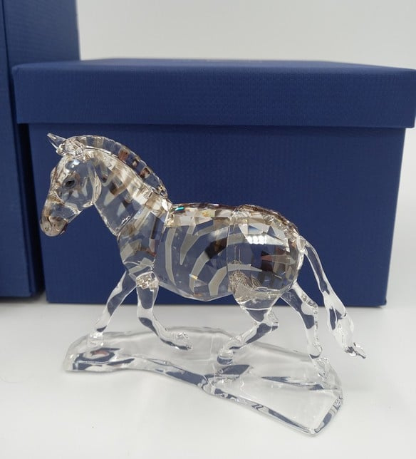 Artikelnummer: G22159Prachtig beeld van Swarovski: de zebra met gekleurde strepen en manen. De zebra staat zeer stevig omdat hij op een basement van helder kristal staat. Het beeld is in 2011 uitgegeven. Inclusief originele doos, omdoos en certificaat.