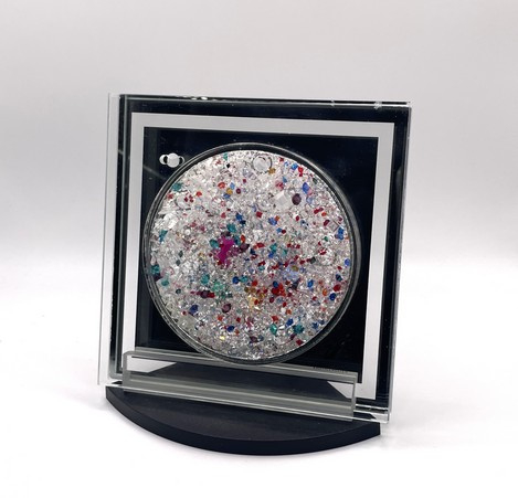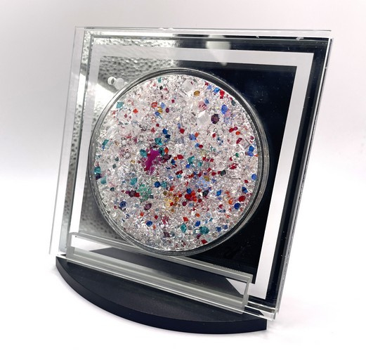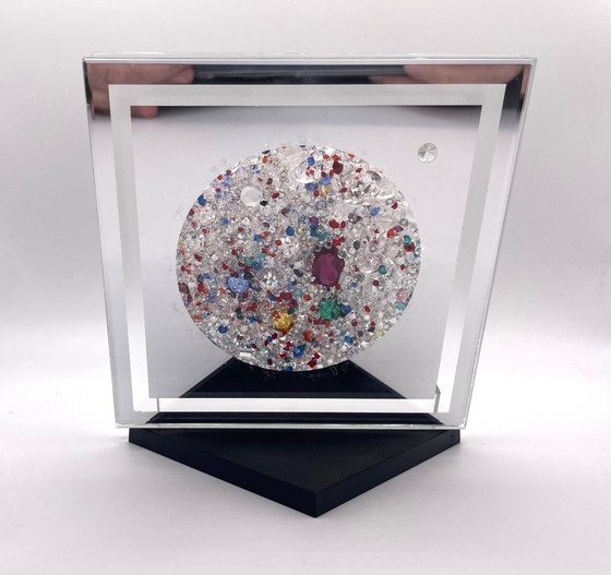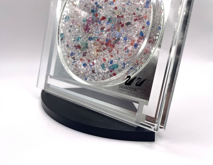 Artikelnummer: 251048Een echt collector's item deze Swarovski plaquette met honderden Swarovski kristallen in allerlei kleuren. De plaquette kan op de standaard neergezet worden, of opgehangen aan het draadje dat met 2 Swarovski kristallen is afgewerkt. De plaquette was te koop in de museumwinkel van de Kristallwelten in Wattens, Oostenrijk.