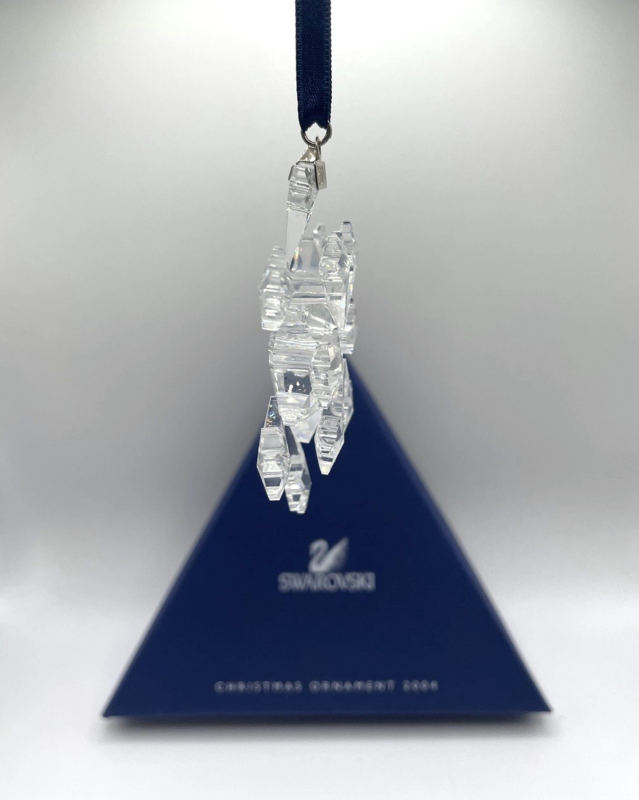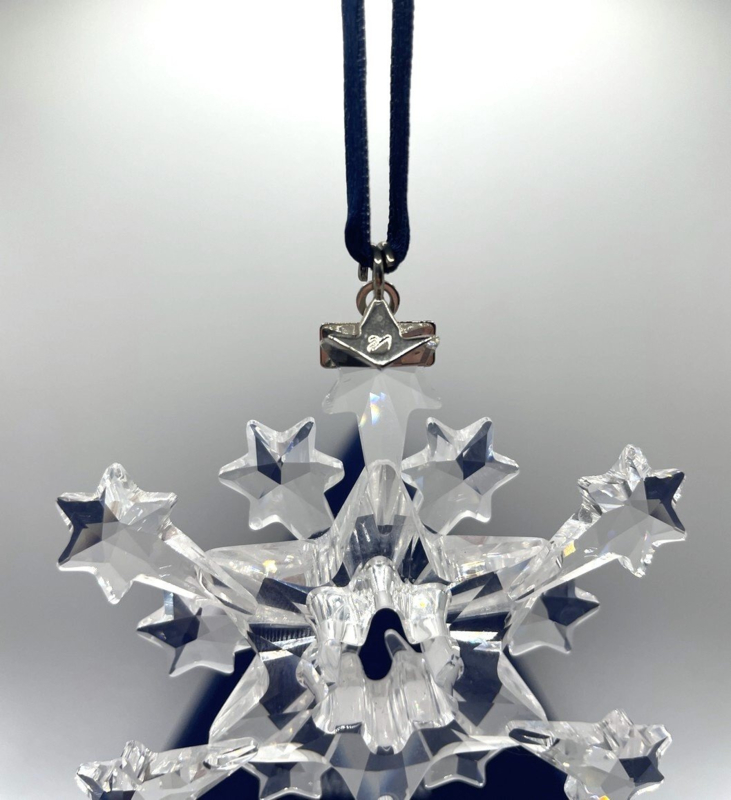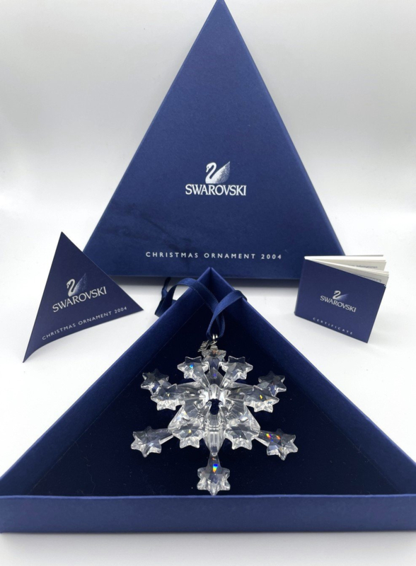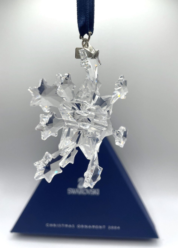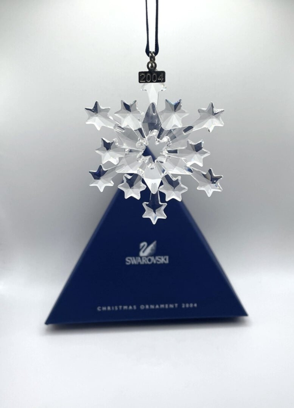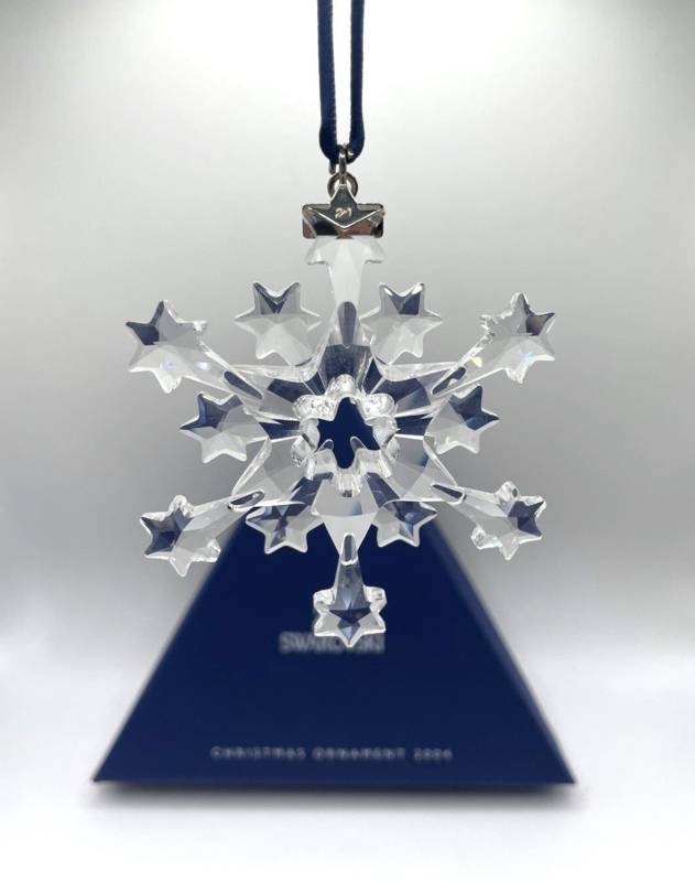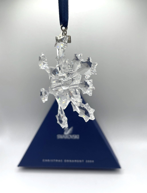 Artikelnummer: G25123Elk jaar brengt Swarovski één of meerdere kerststerren uit. Deze kerstster komt uit 2004, zoals ook op het zilverkleurige hangertje is gegraveerd. De kerstster is gemaakt van helder kristal, met 6 punten en 6 kleinere punten, voorzien van een ster. De ster hangt aan een blauw satijnen lint.