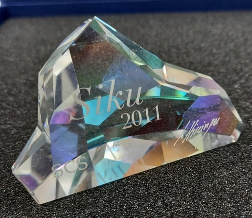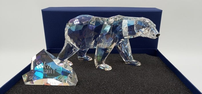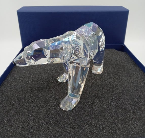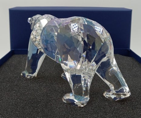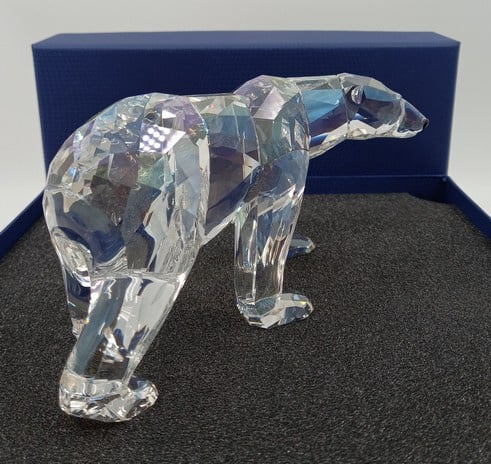 Artikelnummer: G22196Dit prachtige jaarstuk heet 'Siku' en komt uit 2011. Bij het jaarstuk zit ook een plaquette. De ijsbeer / poolbeer is vervaardigd in helder kristal en de ogen en het snuitje is in zwart uitgevoerd. Inclusief originele doos, en omdoos.