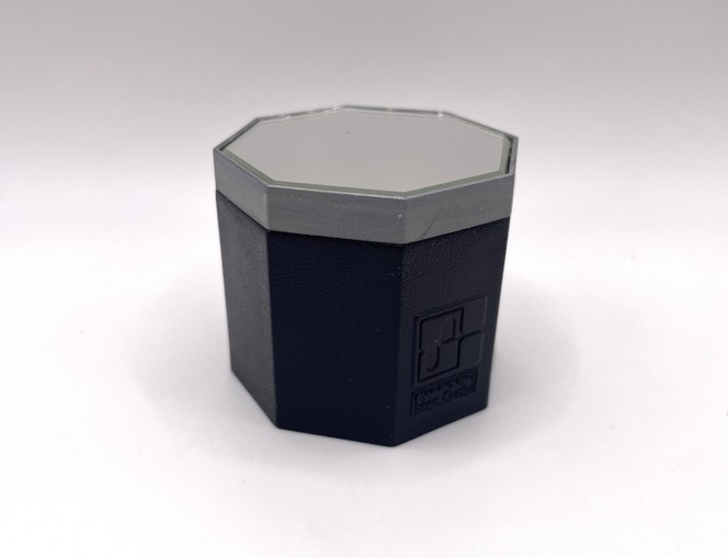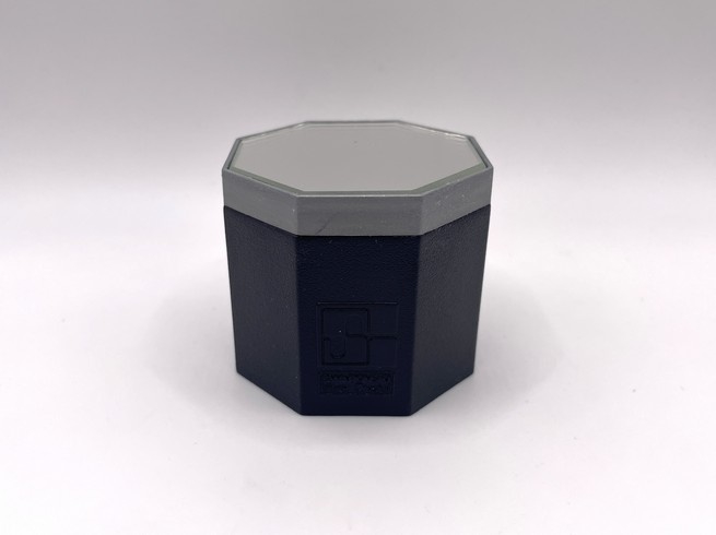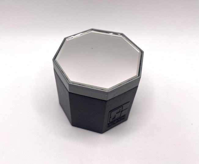 Artikelnummer: 251059Klein octagonaal basement met spiegeltje aan de bovenkant. De voor- en achterkant van het basement is gedecoreerd met het vierkante Swarovski logo dat tussen 1976–1988 werd gebruikt.
