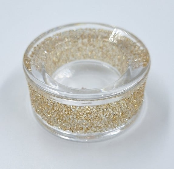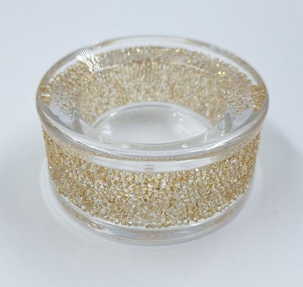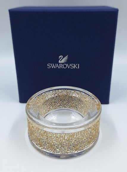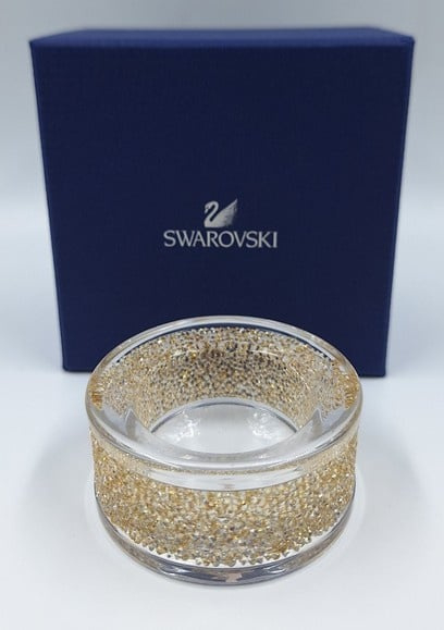 Artikelnummer: G24154Wist je dat Swarovski ook huisaccesoires maakt? Voorbeeld is deze prachtige transparante theelichthouder met honderden gouden Swarovski kristallen. Deze waxinelichthouder heeft een vlakke onderkant.