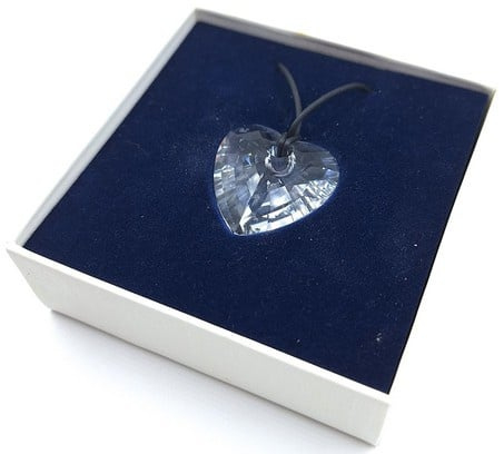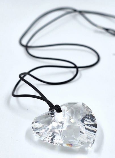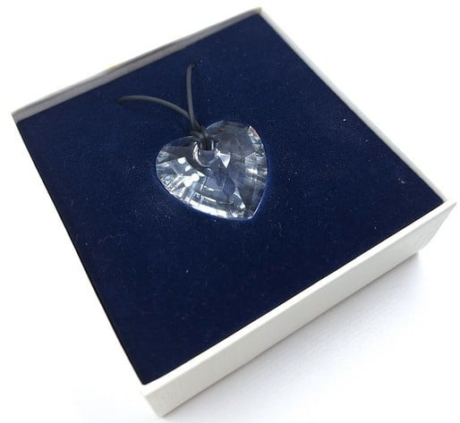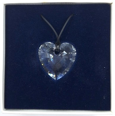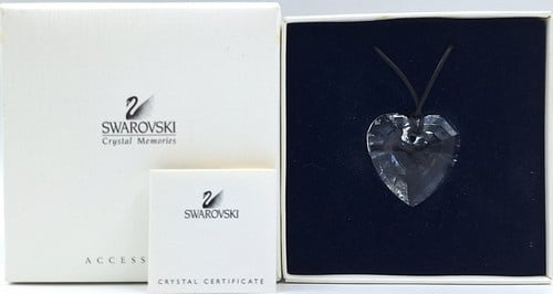 Artikelnummer: G25200Swarovski hanger aan leren koord. De hanger in de vorm van een hart kan gedragen worden als ketting - aan de uiteinden is een sluiting gemonteerd. De hanger is in 2001 uitgebracht en zit nog in de originele doos met certificaat.