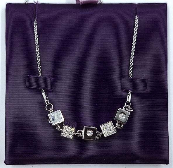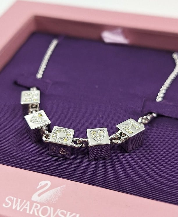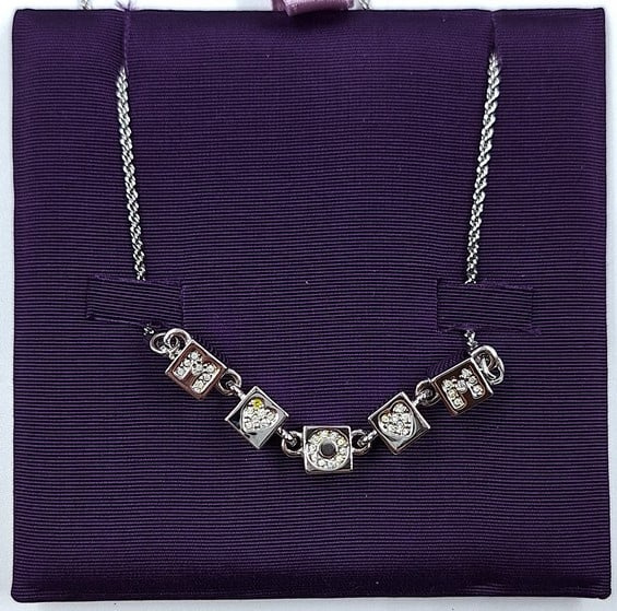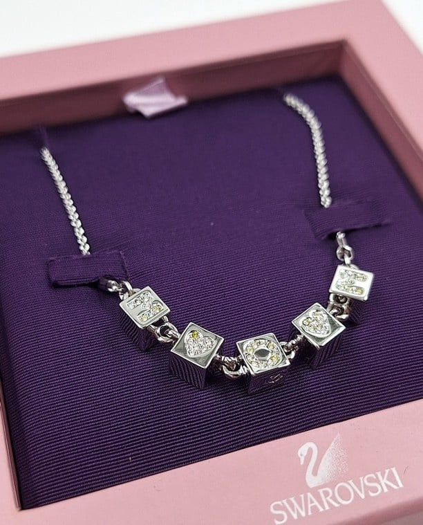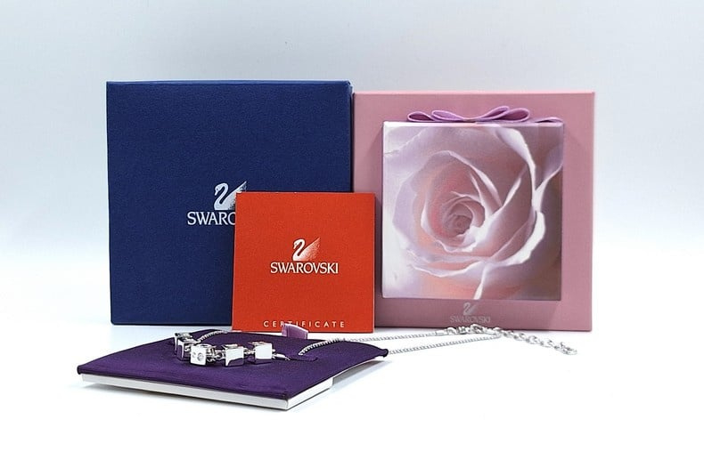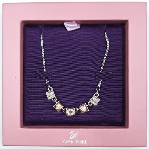 Artikelnummer: G25198Prachtige Swarovski ketting, geproduceerd ter gelegendheid van moederdag in 2002. De ketting zit in een bijpassende cadeauverpakking met roosdecoratie. De ketting is in lengte verstelbaar.