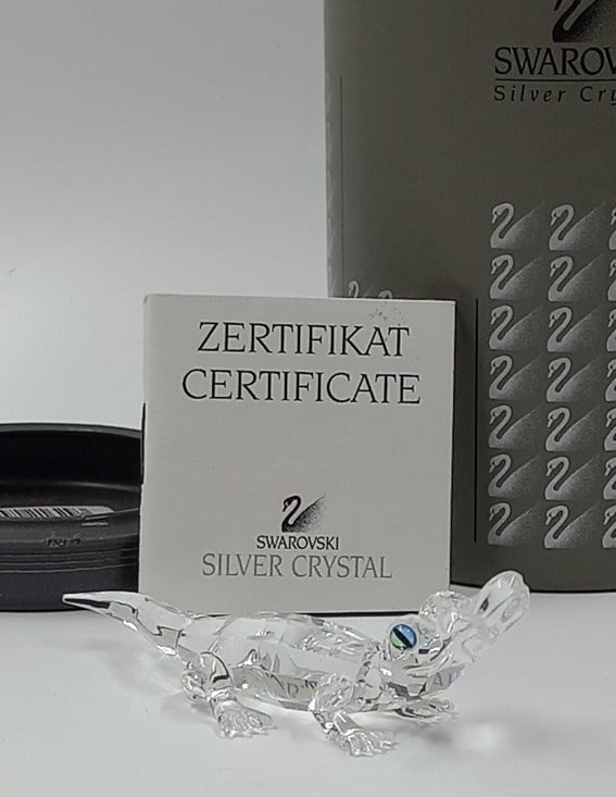 Aligator van Swarovski met gekleurde ogen. Inclusief doos en certificaat.