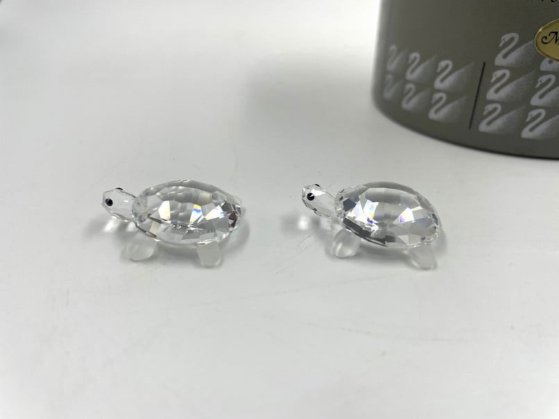 Artikelnummer: G25269Swarovski 2 schildpad baby's met gematteerde pootjes, inclusief doos en certificaat.