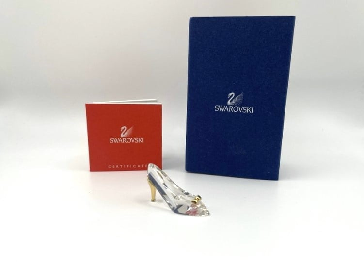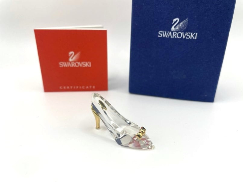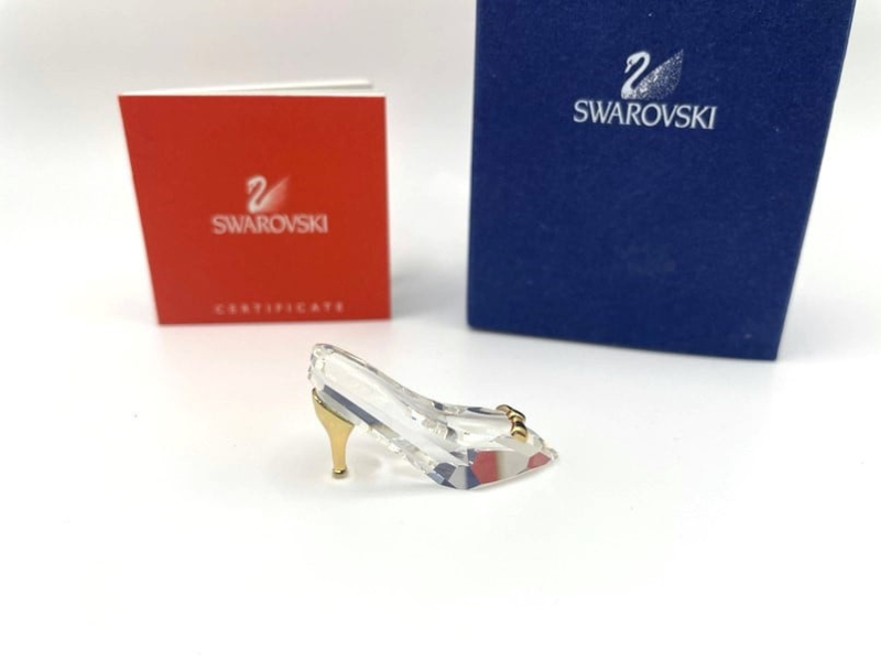 Artikelnummer: G24269Een cadeau voor een fashionista? Deze hoge hak zal zeker in de smaak vallen! Deze pump is uitgevoerd in helder kristal, met goudkleurige details. Het beeldje zit in de originele doos, inclusief omdoos en certificaat.