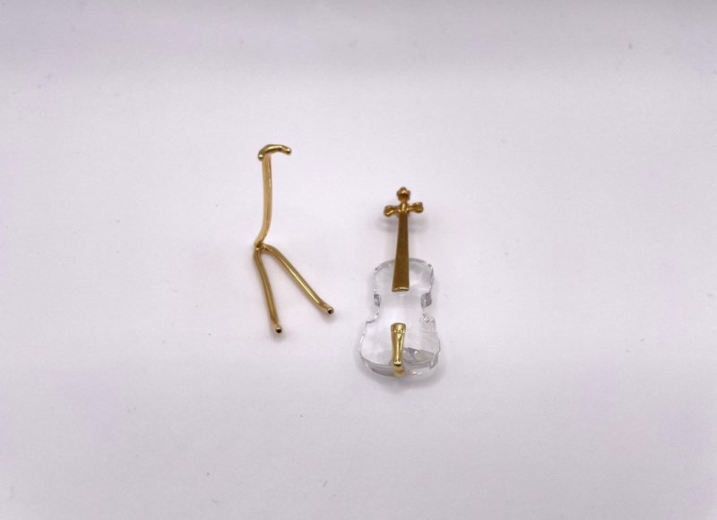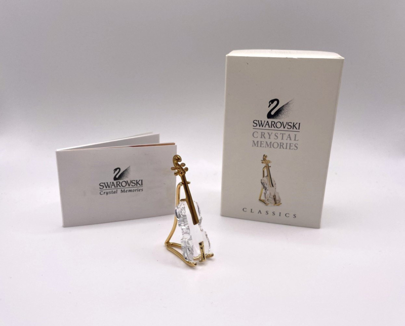 Artikelnummer: G25120Viool in standaard van Swarovski, inclusief doosje, omdoosje en certificaat. De viool is onderdeel van de serie "Memories" en heeft goudkleurige details.