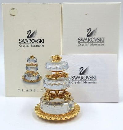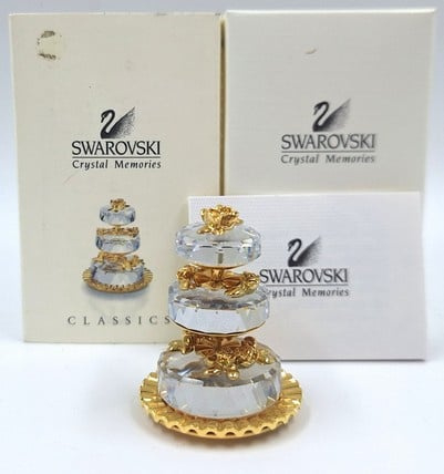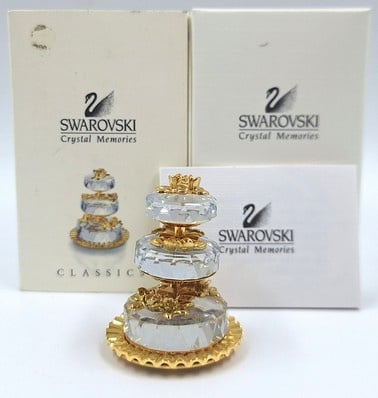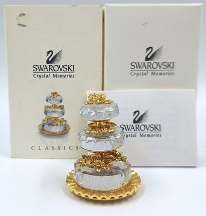 Artikelnummer: G251773-delige bruidstaart van Swarovski, uit de serie 'Memories'. Inclusief doosje, omdoos en certificaat. De taarten zijn losse onderdelen.