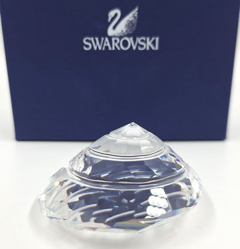 Artikelnummer: G25151Tolhoornschelp van Swarovski. Het gaat om een verlengingsgeschenk dat in 2007 naar SCS leden gestuurd werd bij verlenging van hun lidmaatschap. Inclusief doosje, omdoos en certificaat.