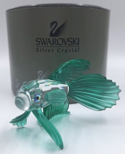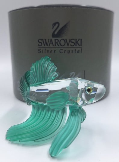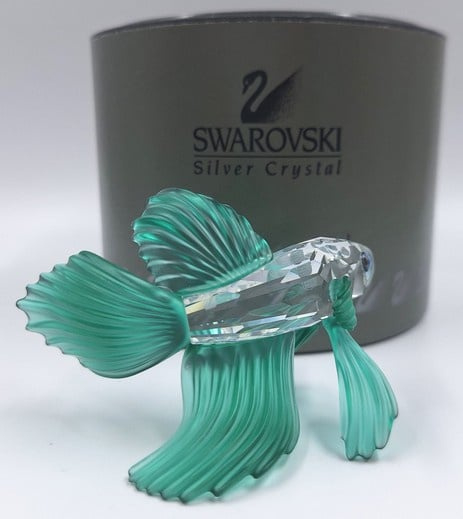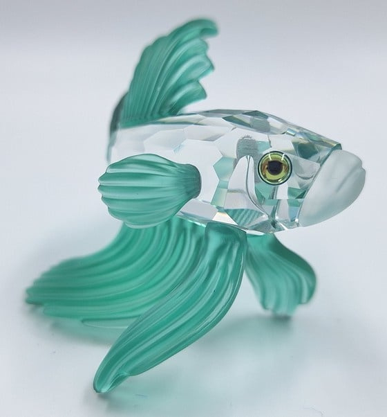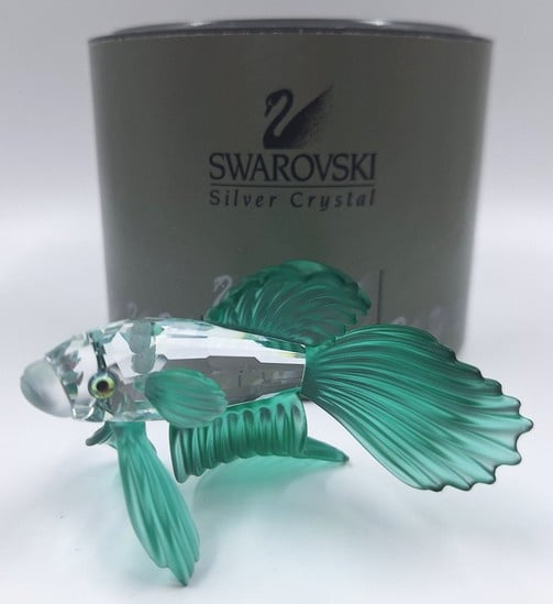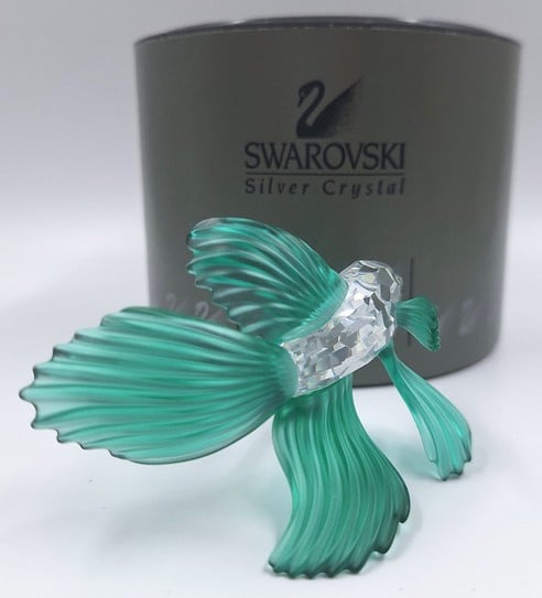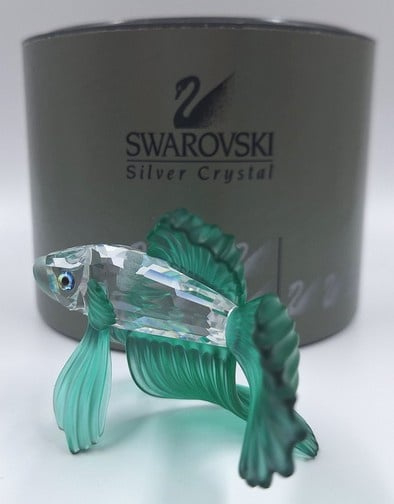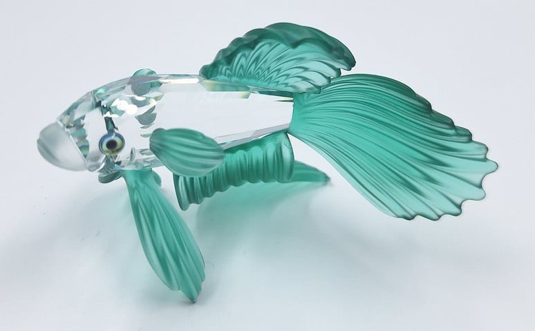 Artikelnummer: G25134Deze groene siamese vechtvis is onderdeel van een driedelige set (blauw, groen en rood). De vis is uitgevoerd in gematteerd groen kristal. Het lichaam is gemaakt van helder kristal. Inclusief origineel doosje en certificaat.