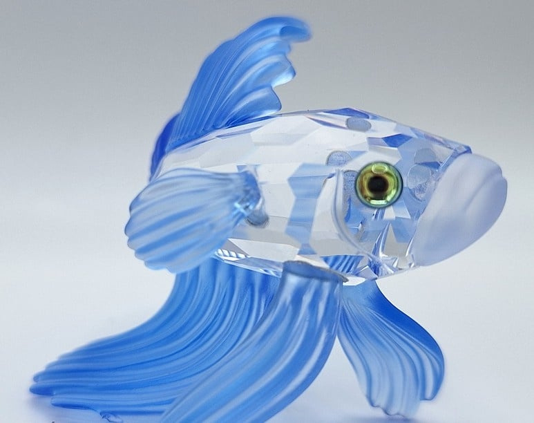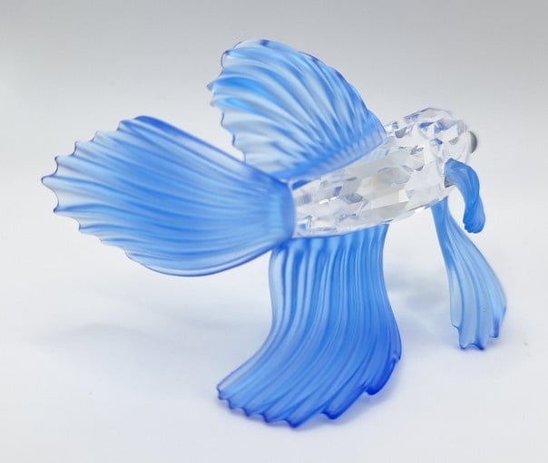 Artikelnummer: G25129Deze blauwe siamese vechtvis is onderdeel van een driedelige set (blauw, groen en rood). De vis is uitgevoerd in gematteerd blauw kristal. Het lichaam is gemaakt van helder kristal. Inclusief originele doos en certificaat.