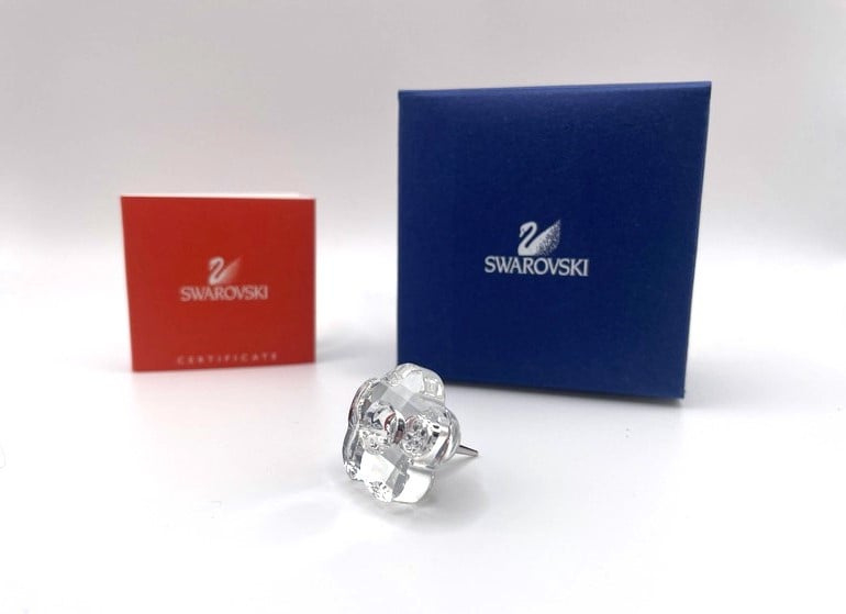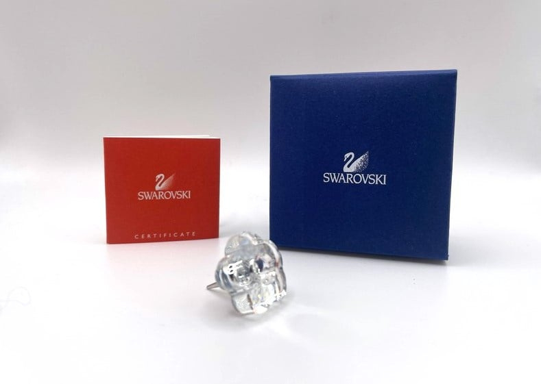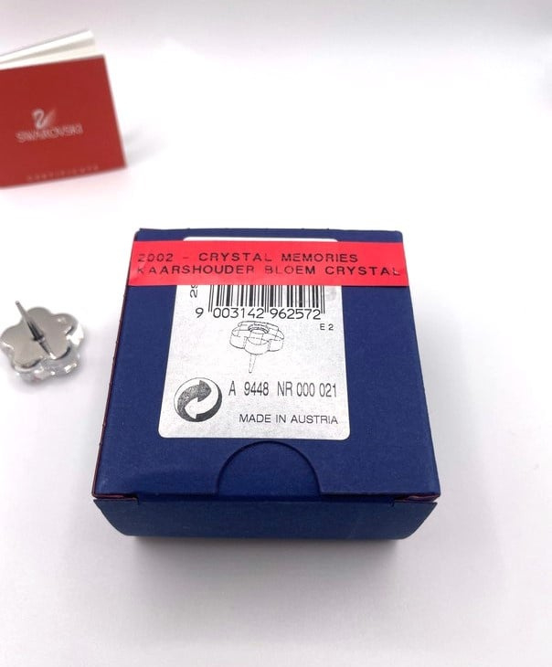 Artikelnummer: G24275Kleine kandelaar van Swarovski, inclusief doosje, omdoosje en certificaat. De kandelaar is gemaakt van helder kristal en heeft aan de achterkant een pin, waarmee het bijvoorbeeld in een bloemstukje gestoken kan worden. In het midden kan een klein kaarsje geplaatst worden.