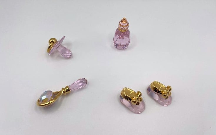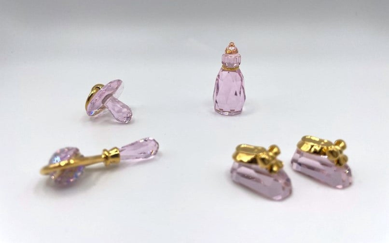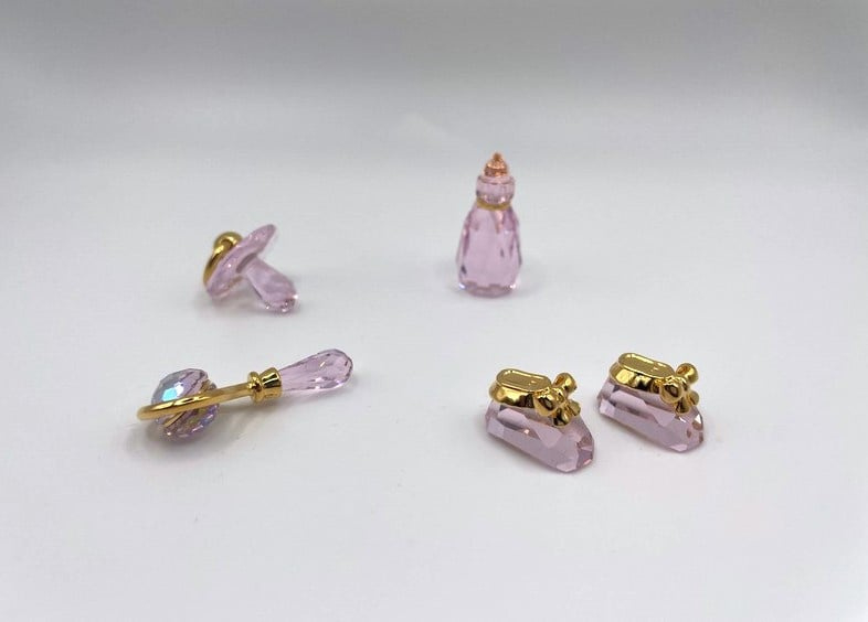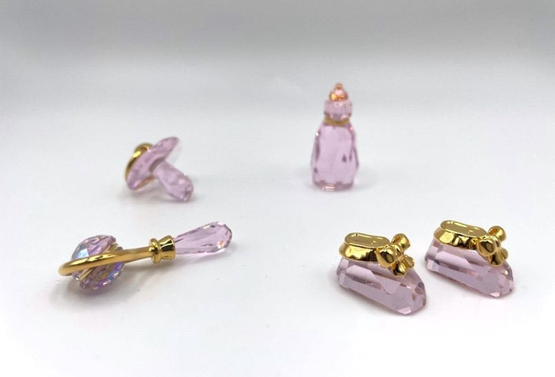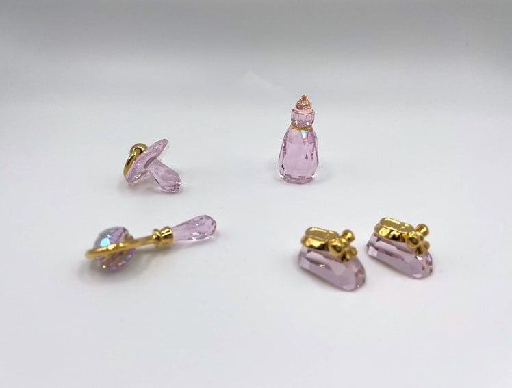 Artikelnummer: G24264Zoek je een bijzonder cadeau voor de geboorte van een meisje? Wat dacht je van deze prachtige 4-delige geboorteset van Swarovski, bestaande uit een speen, flesje, rammelaar en 2 babyschoentjes. Alle beeldjes zijn uitgevoerd in rosaline kristal. Het setjes zit in de originele doos, inclusief omdoos en certificaat.