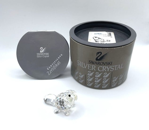 Kleine Swarovski bever met gematteerde tandjes, inclusief doos en certificaat.