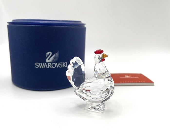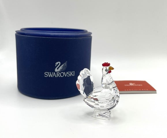 Hen / kip van Swarovski met gekleurde onderdelen, inclusief doos en certificaat.