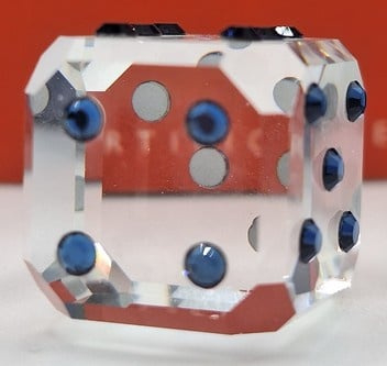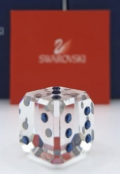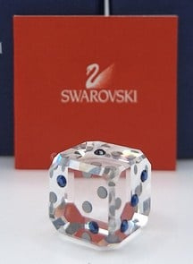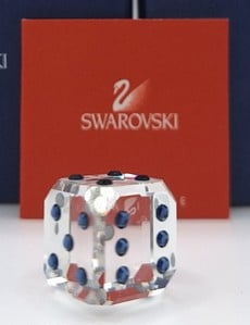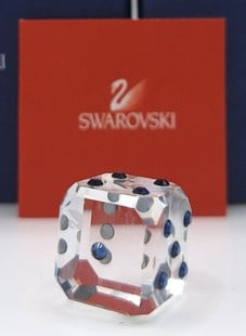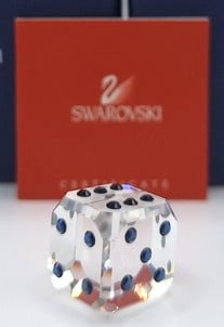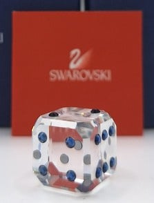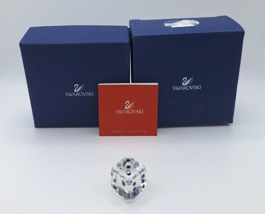 Dobbelsteen Sapph van Swarovski, inclusief doos, omdoos en certificaat.