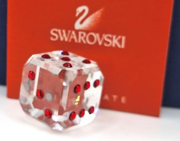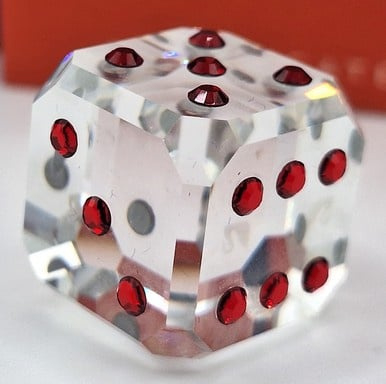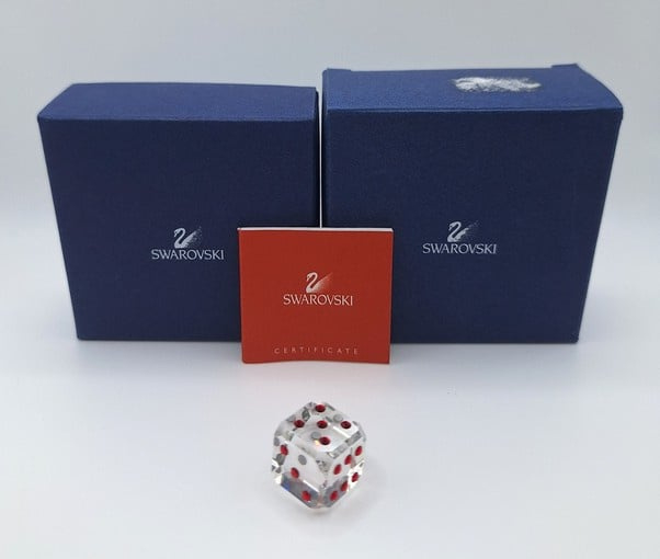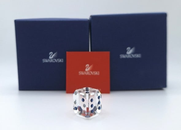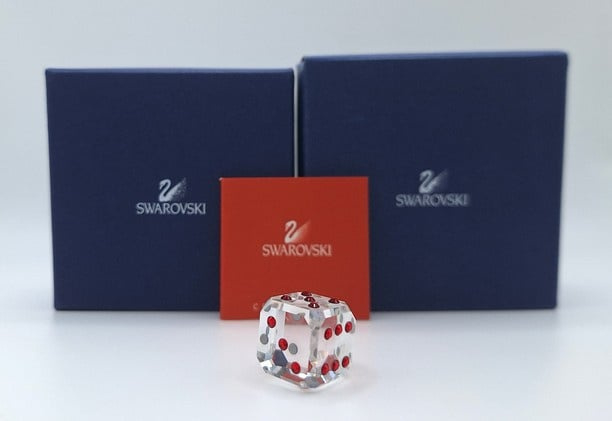 Dobbelsteen Siam van Swarovski, inclusief doos, omdoos en certificaat.