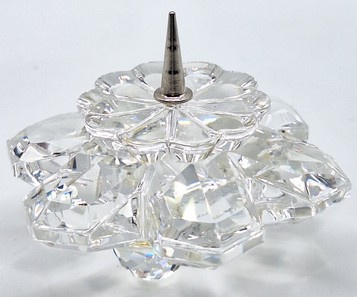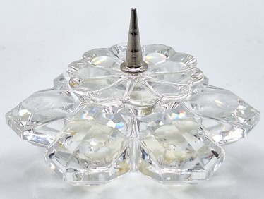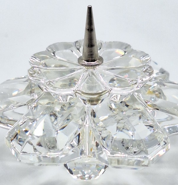 Artikelnummer: 251093Kleine kandelaar van Swarovski, inclusief doosje en certificaat. De kandelaar is gemaakt van helder kristal en heeft aan de bovenkant een pin, waarop een kaars(je) geplaatst worden.
