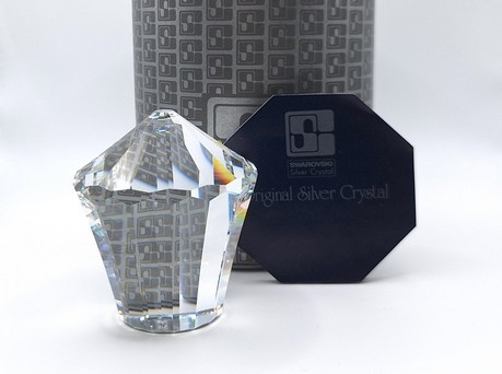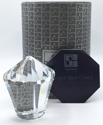 Artikelnummer: 251097Zeldzaam en inmiddels uit productie genomen Swarovski presse-papier in de vorm van een nostalgische draaimolen. Deze versie, ontworpen door Max Schreck is uitgevoerd in Crystal CAL (Comet Argent Light) met een zilverkleurige spiegelcoating en een zwarte fluwelen basis.