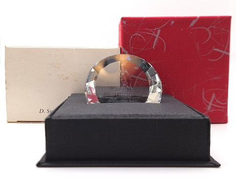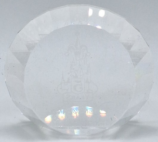 Artikelnummer: 251104Deze bijzondere Swarovski presse-papier werd uitgebracht ter ere van het 5-jarig jubileum van Disneyland Parijs. De paperweight, gemaakt van helder kristal, vangt en weerkaatst het licht op prachtige wijze, terwijl de feestelijke afbeelding van het iconische Disney paleis verwijst naar dit feestelijke moment. Ook is de tekst "5 years Disneyland Paris" te lezen.