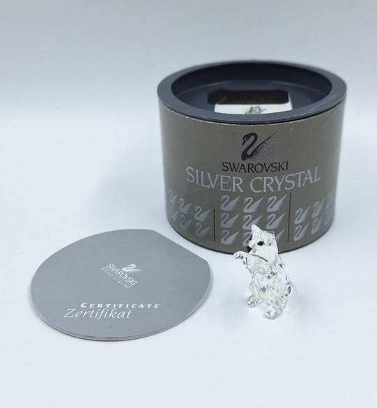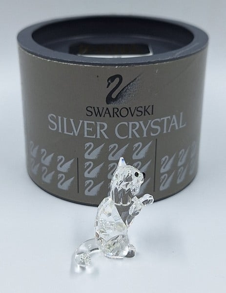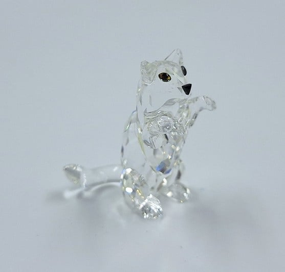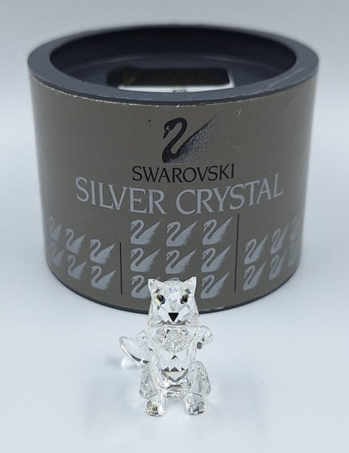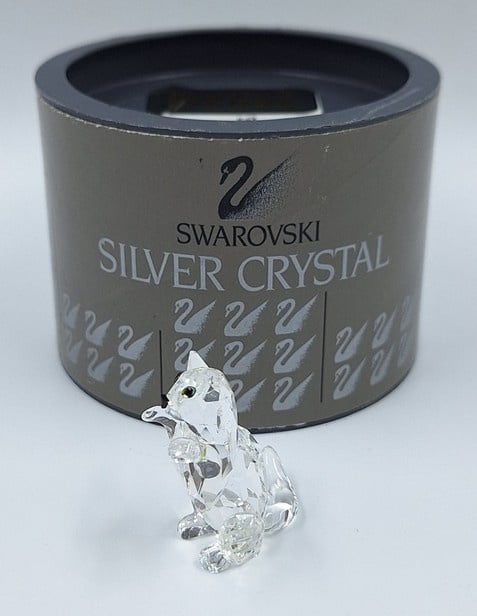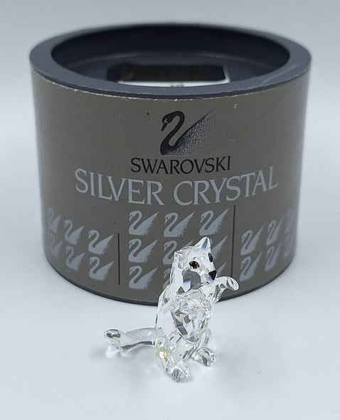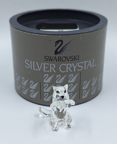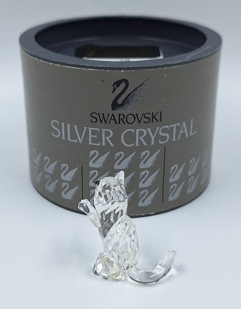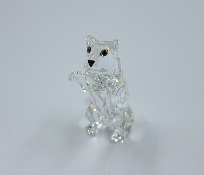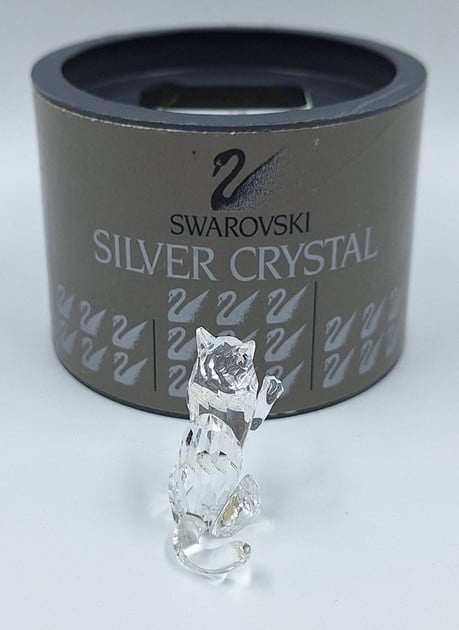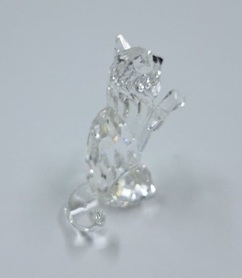 Artikelnummer: G24160Kleine kat in spelende houding. De poes is uitgevoerd in helder kristal en heeft zwarte ogen en neus.