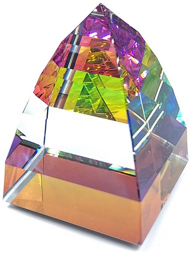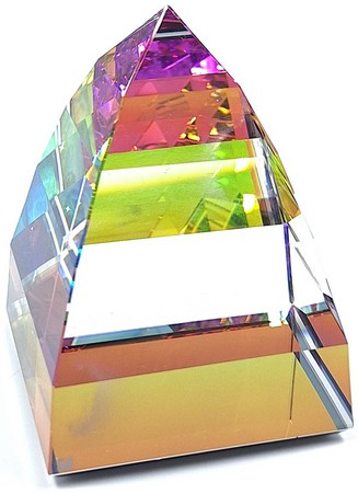 Artikelnummer: 251135Bijzondere presse papier Piramide van Swarovski, inclusief het originele doosje en certificaat. Het gaat om de grote, multicolor variant.