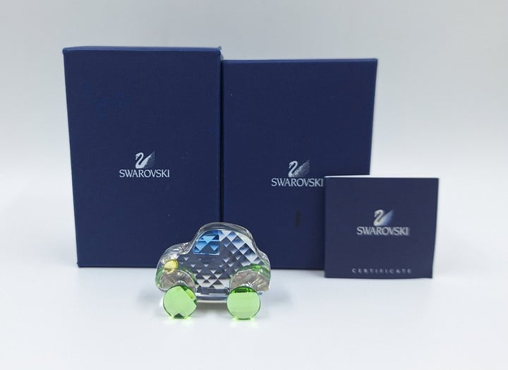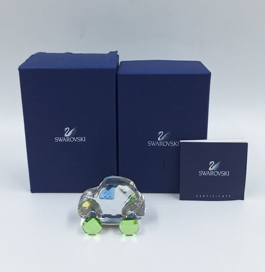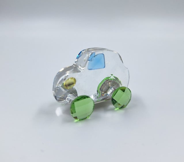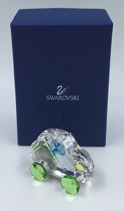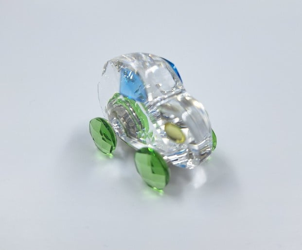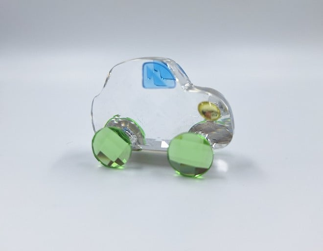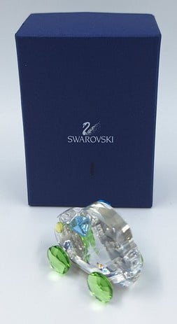 Artikelnummer: G24180Deze kristallen auto op wieltjes komt uit de serie 'Kameraadjes'. De auto is uitgevoerd in gefaceteerd helder kristal, de wielen in de groene kleur 'Peridot' en de ramen in lichtblauw.
