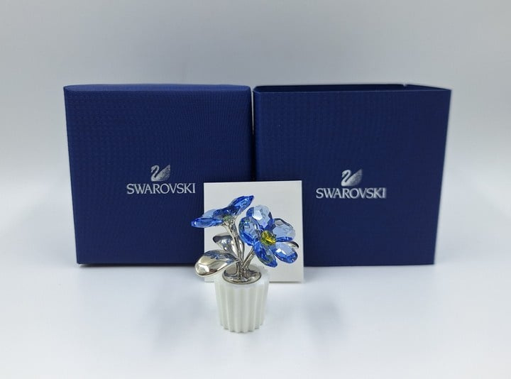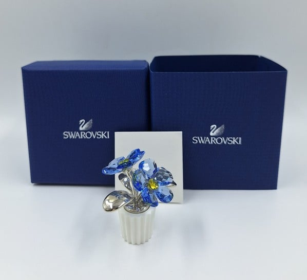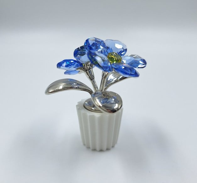 Artikelnummer: G24168Iemand een bloemetje geven? Waarom niet een bloem die nooit stopt met bloeien? Deze sapphire Swarovski vergeet-mij-nietjes in wit bloempotje schitteren het hele jaar door.