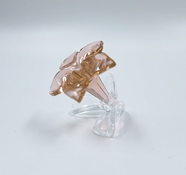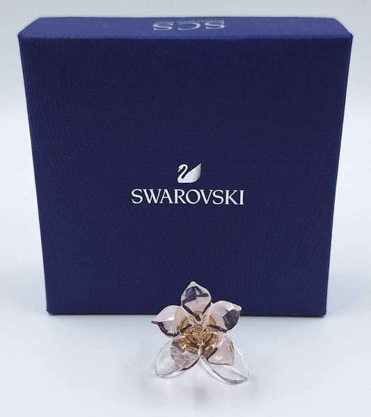 Artikelnummer: G24179Dit ledengeschenk is vervaardigd voor de SCS leden in 2021. De bloem genaamd 'Desert Rose' of 'Woestijnroos' is uitgevoerd in helder en zacht roze kristal.