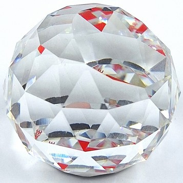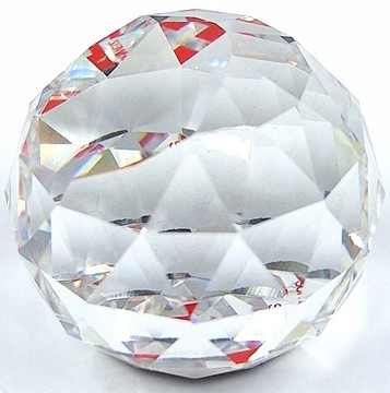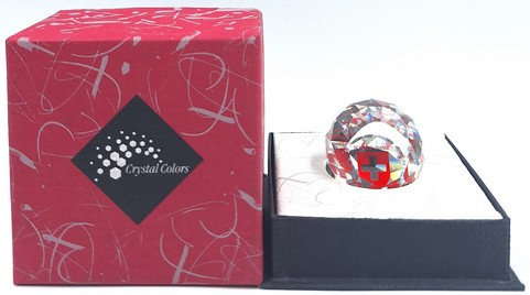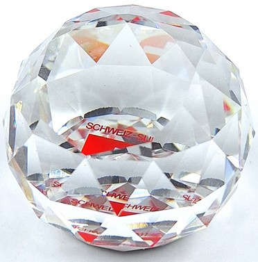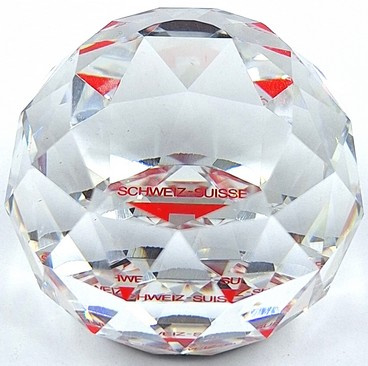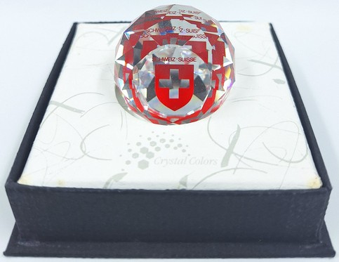 Ronde presse papier van Swarovski. De bol toont de flag van Zwitserland.
