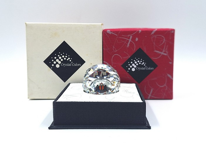 Artikelnummer: 251165Zeldzame presse papier van Swarovski, inclusief originele doos en omdoos. Het gaat om de blauwe variant.
