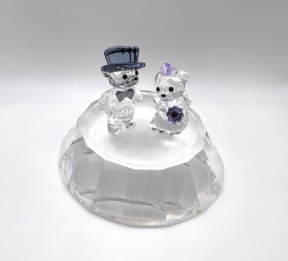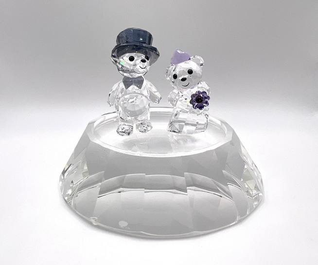 Artikelnummer: 251157Rond basement gemaakt van kristal. Het basement kan gebruikt worden om een aantal kleine beeldjes op te zetten, of een jaarstuk. Als voorbeeld is het basement gefotografeerd met het bruidspaar van Kris beren. Het basement is onderdeel van "The Arribas Collection" en zit nog in de originele doos.
