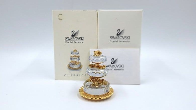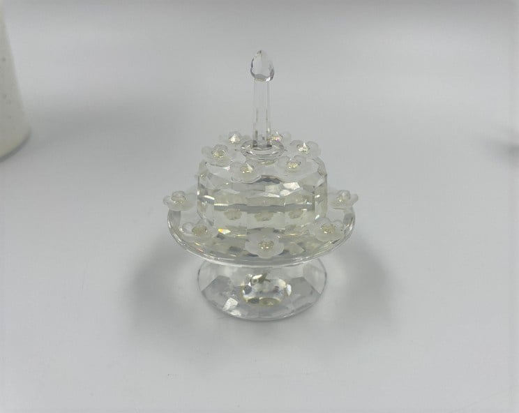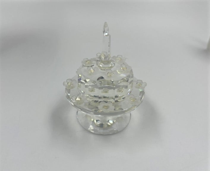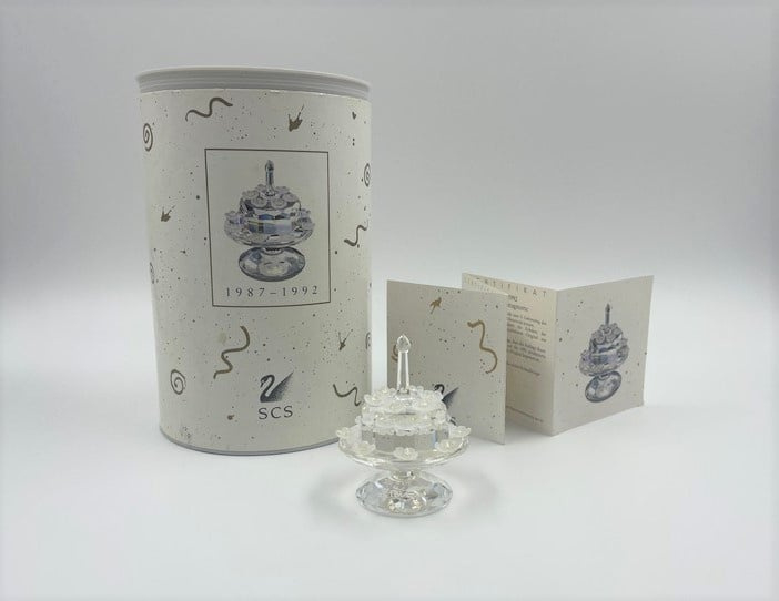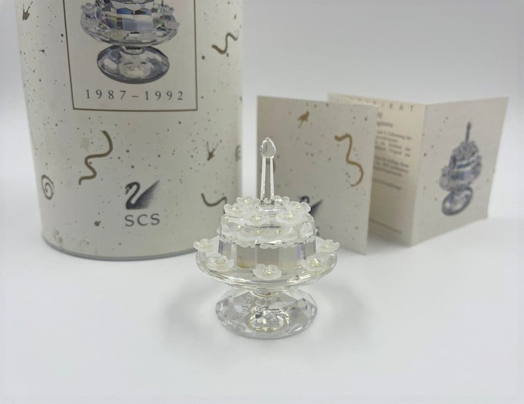 Artikelnummer: G23115Jubileumtaart van Swarovski, inclusief doos en certificaat. Dit beeldje is uitgebracht ter gelegenheid van het lustrum van de Swarovski Collectors Society. Op de onderkant staat daarom ook '1987 - 1992 SCS'.