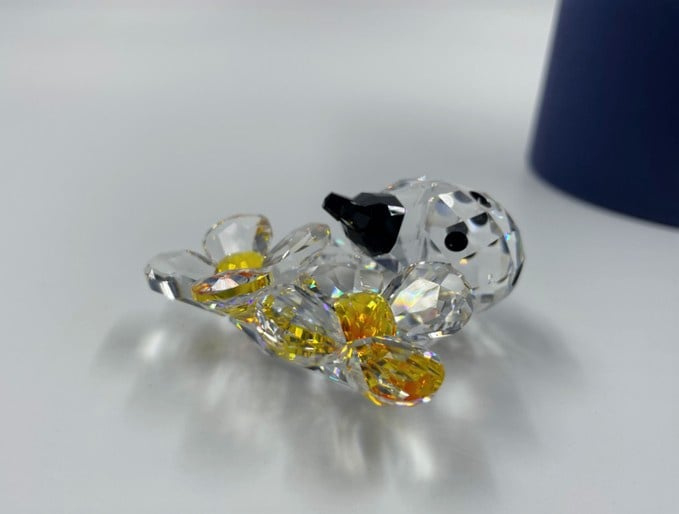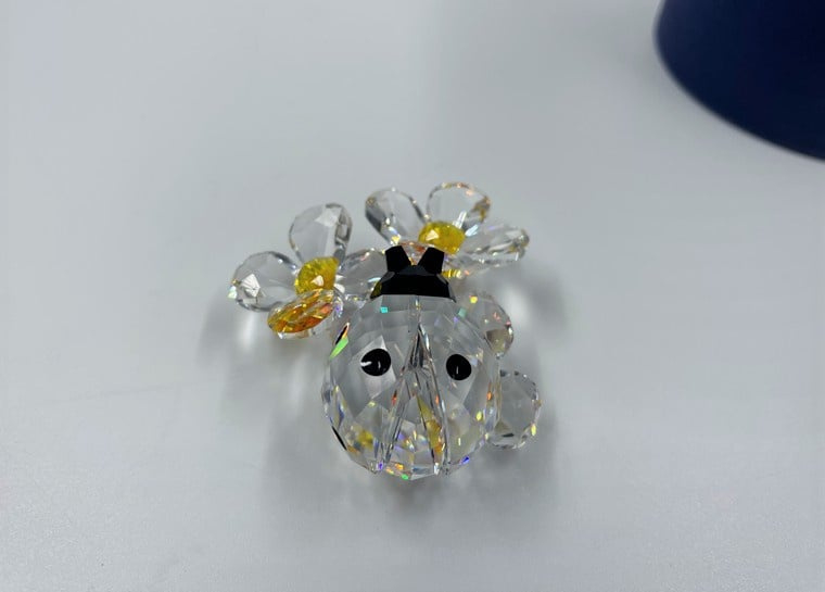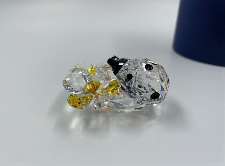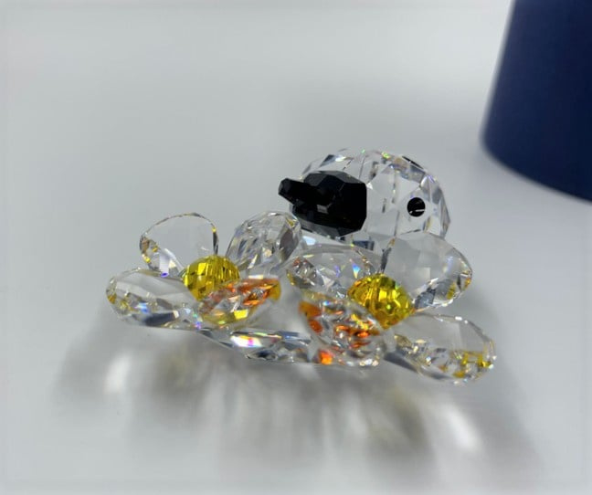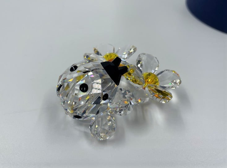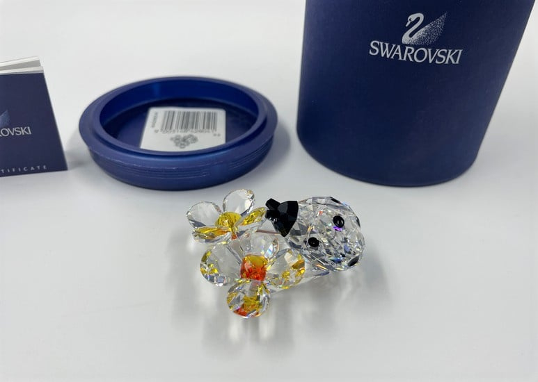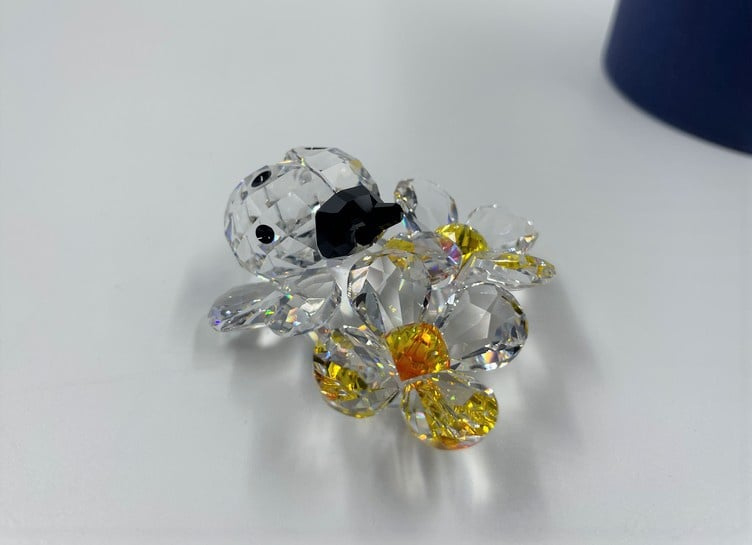 Artikelnummer: G22173Zeer decoratief beeldje van Swarovski: een lieveheersbeestje op bloemen. Het lieveheersbeestje is gemaakt van zwart en helder kristal en de bloem van oranje en helder kristal. Inclusief doosje en certificaat.