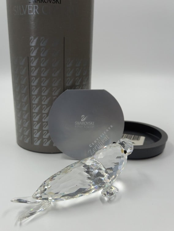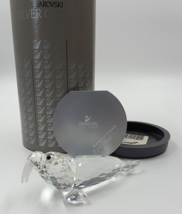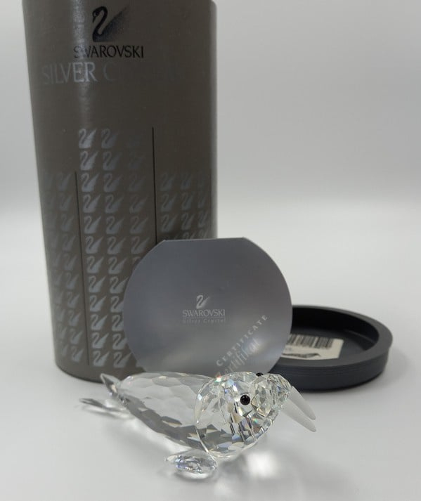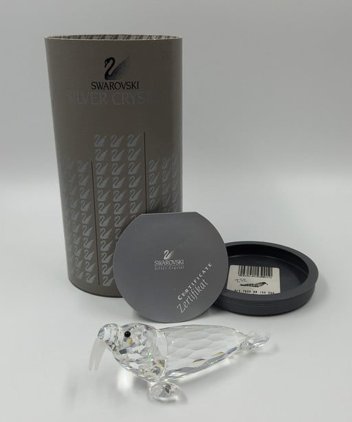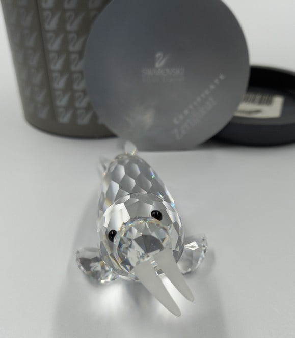 Walrus van Swarovski met zwarte ogen en gematteerde slagtanden. Inclusief doos en certificaat.