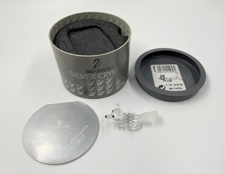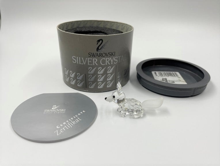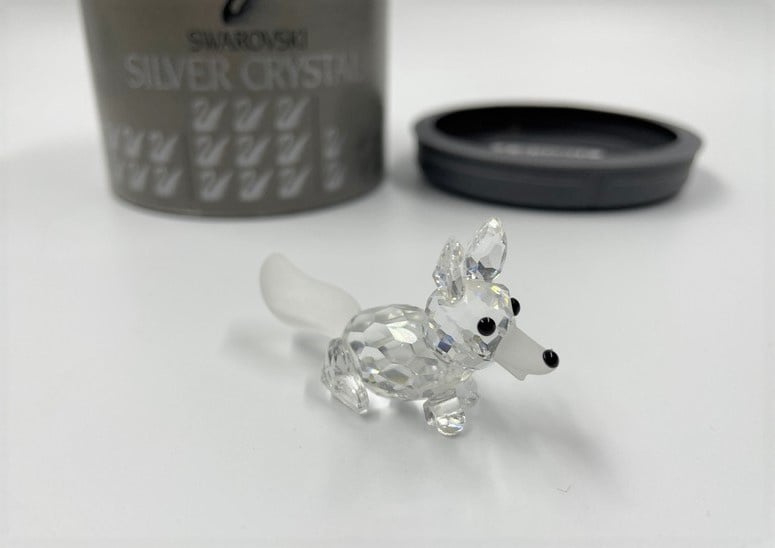 Sluipende vos met gematteerde staart van Swarovski, inclusief doos en certificaat.