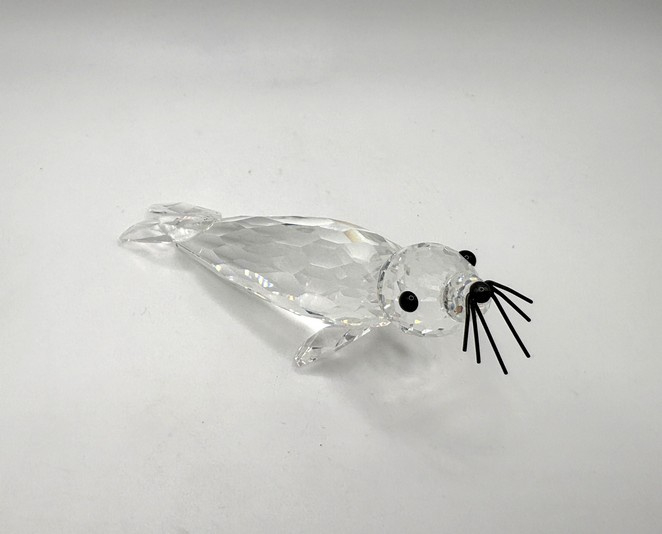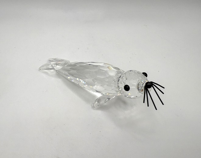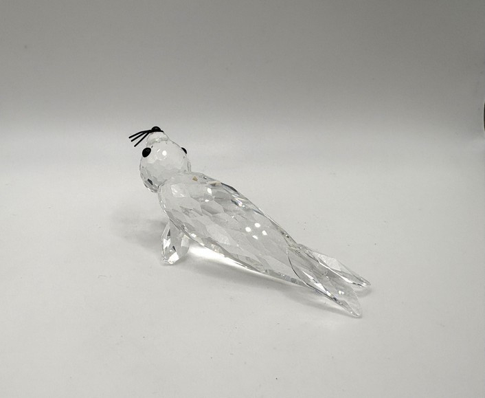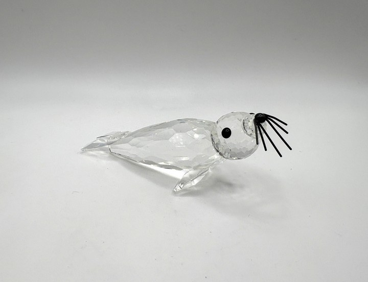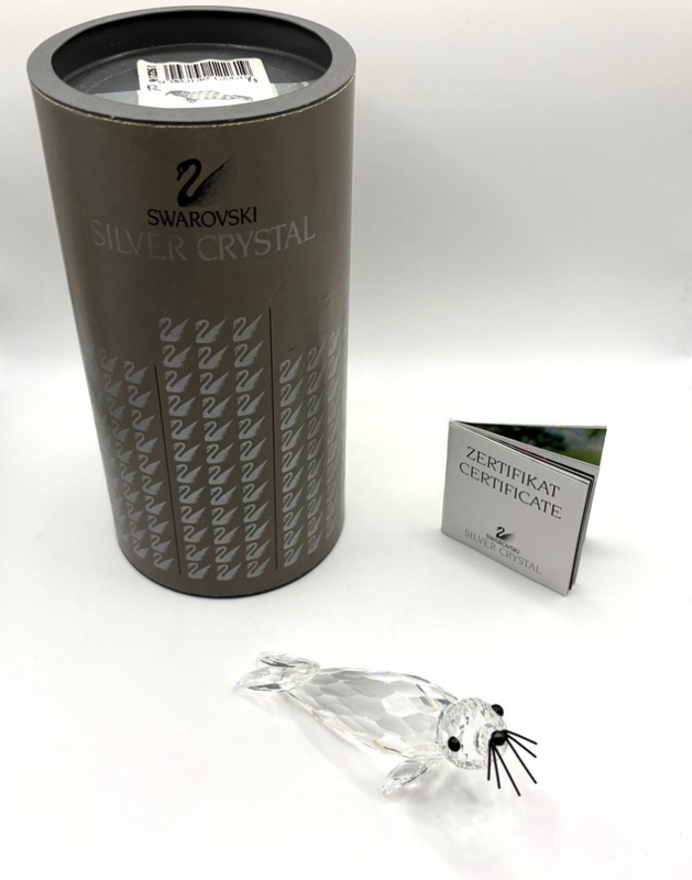 Swarovski grote zeehond met zwarte snorharen, inclusief doos en certificaat.