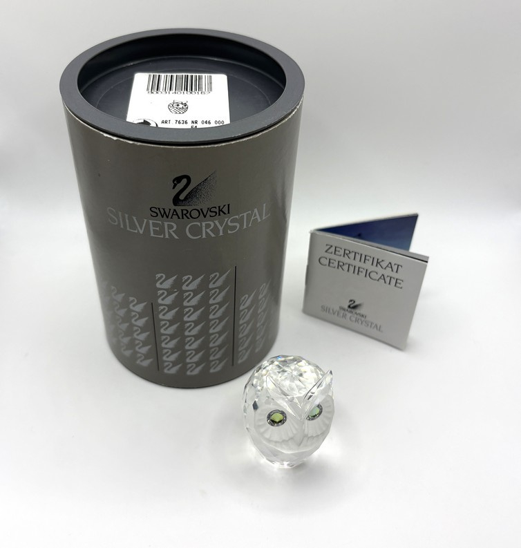 Artikelnummer: 251205Swarovski uil met gekleurde ogen. Inclusief originele doos en certificaat. Swarovski heeft de uil in verschillende formaten gemaakt. In dit geval gaat het om de kleine variant.