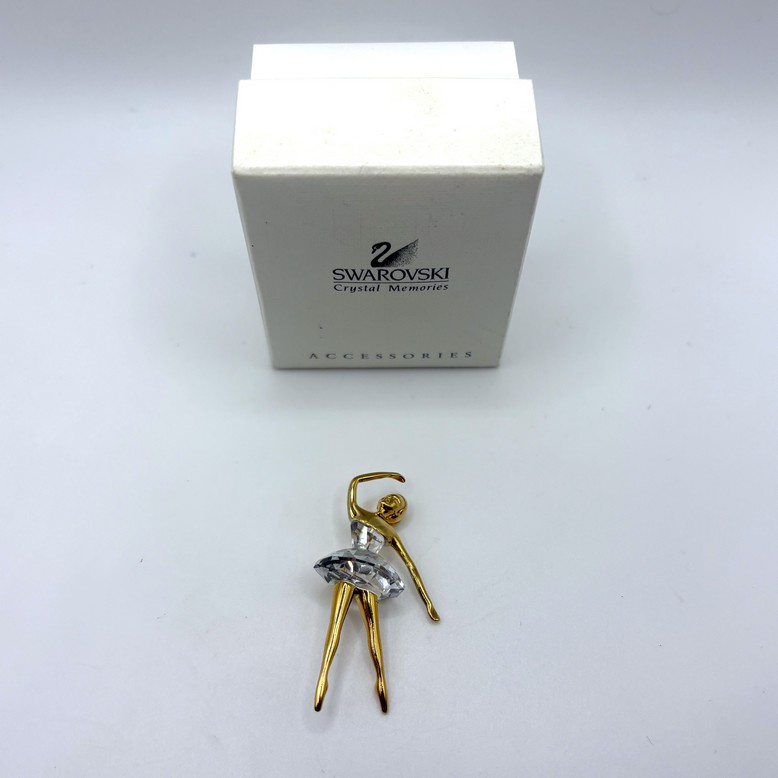 Artikelnummer: 251218Op zoek naar een cadeau voor iemand die van dansen of ballet houdt? Deze prachtige Swarovski broche van een dansende ballerina zou een mooi cadeau kunnen zijn! De brochte is goudkleurig met details van helder Swarovski kristal.