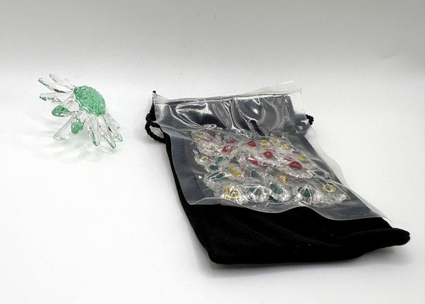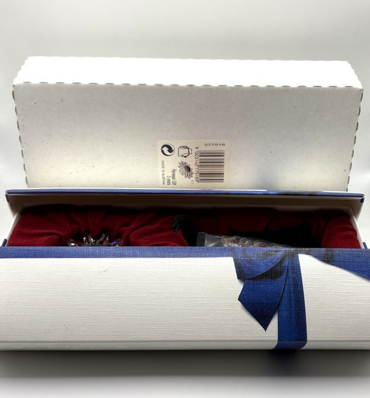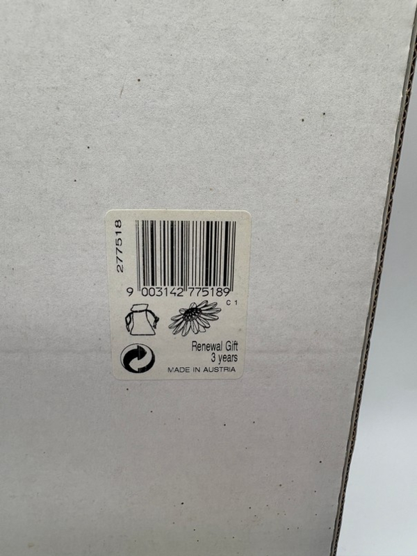 Artikelnummer: 251221Als verzamelaar van Swarovski kun je lid worden van de Swarovski Collectors Society (SCS). Als dank voor je lidmaatschap ontvang je elk jaar een geschenk van Swarovski. Het geschenk wisselt steeds. In 1999, 2000 en 2001 ontving je een margriet in verschillende kleuren. In 2001 was dat een groene margriet. Als het ook nog eens je driejarige jubileum van lidmaatschap was, ontving je er ook nog een zakje kleine margrietjes bij in een velvet zakje.