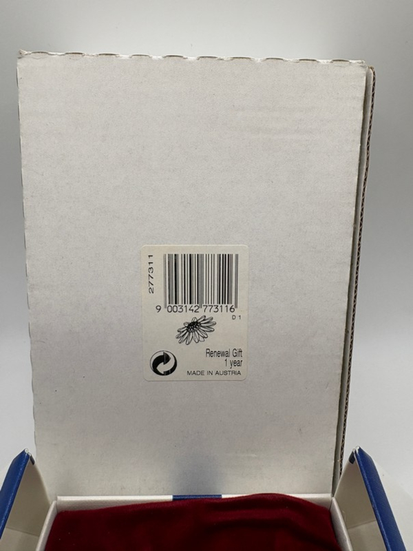 Artikelnummer: 251224Als verzamelaar van Swarovski kun je lid worden van de Swarovski Collectors Society (SCS). Als dank voor je lidmaatschap ontvang je elk jaar een geschenk van Swarovski. Het geschenk wisselt steeds. In 1999, 2000 en 2001 ontving je een margriet in verschillende kleuren. In 2001 was dat een groene margriet.