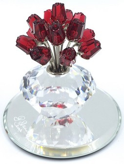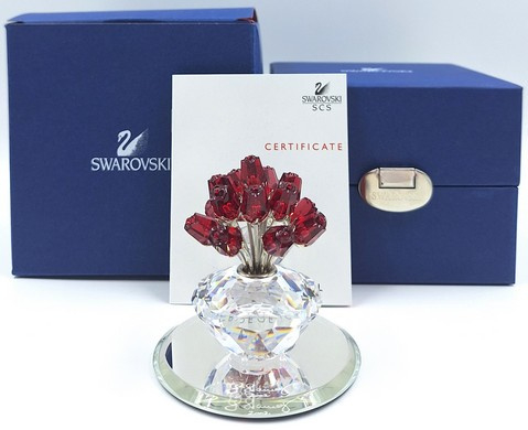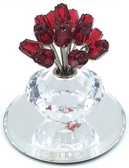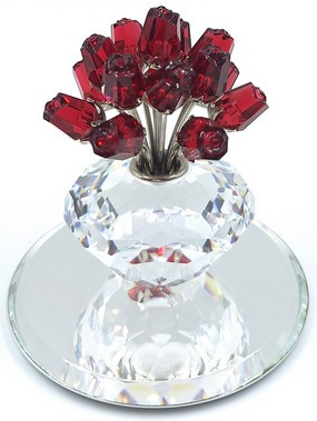 Artikelnummer: 261009Jubileumvaas of Vases of Roses van Swarovski. De vaas met rode rozen wordt geleverd met het bijbehorende spiegeltje.