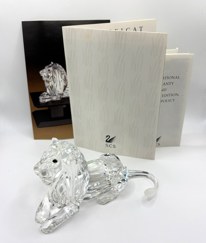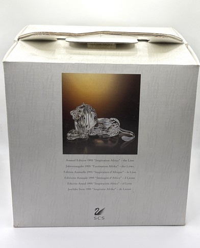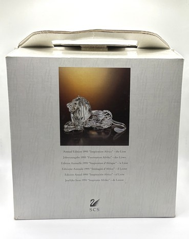 Artikelnummer: 251201Leeuw van Swarovski, inclusief originele doos en certificaten. Dit jaarstuk behoort tot de serie ‘Inspiratie Afrika’ en is uitgegeven in 1995. De leeuw is gemaakt van helder kristal, met gematteerde staart.